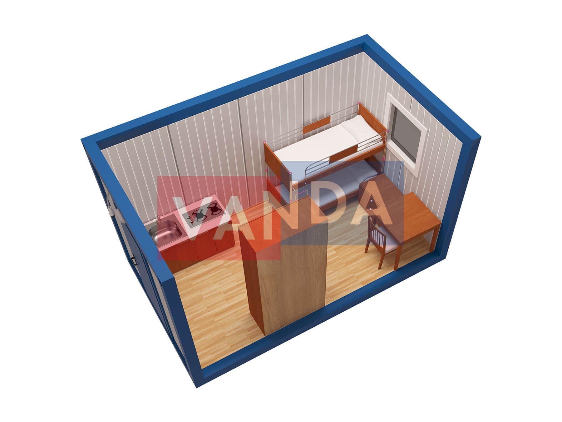 Металлическая бытовка с кухней в тамбуре 5,85 x 2,4 - Вагонка ПВХ