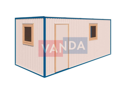 Типовая недорогая строительная бытовка эконом-класса выполняется из металлического профиля с обшивкой из оцинкованного листового металла. Пол изготовлен из ДСП влагостойкого 36 мм , утепление – из фольгированного пенофола. Внутренняя обшивка выполняется из вагонки или ДВП.